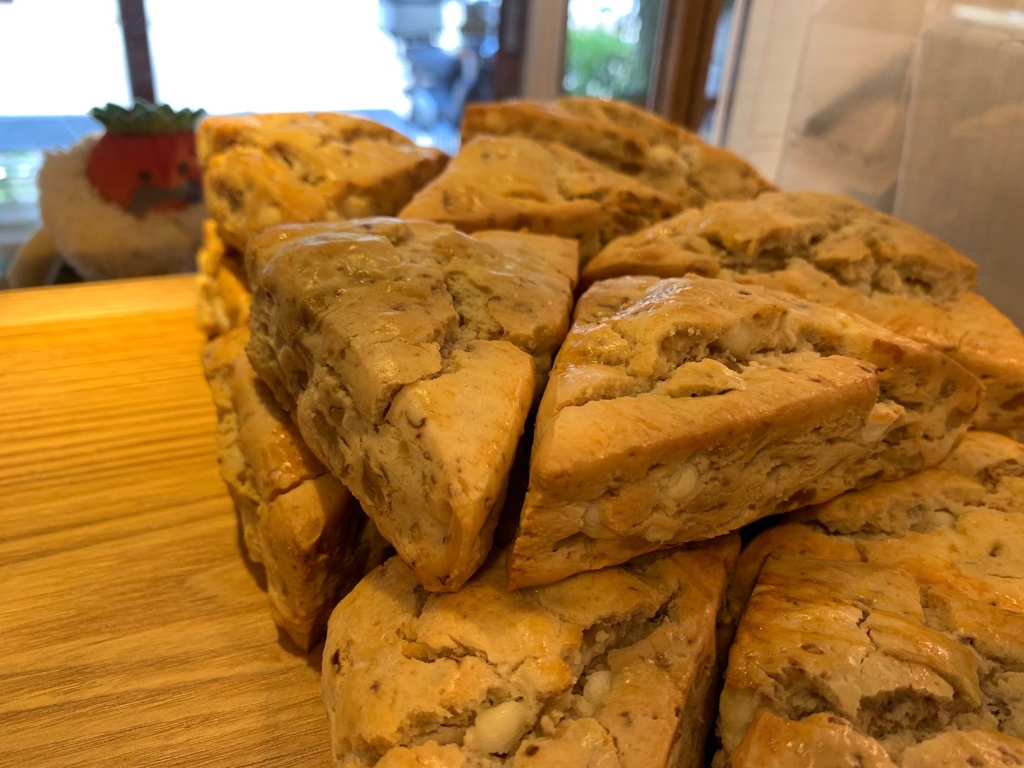 「ホワイトチョコとくるみの入った米粉のスコーン」にしてみたんじゃ。